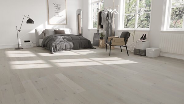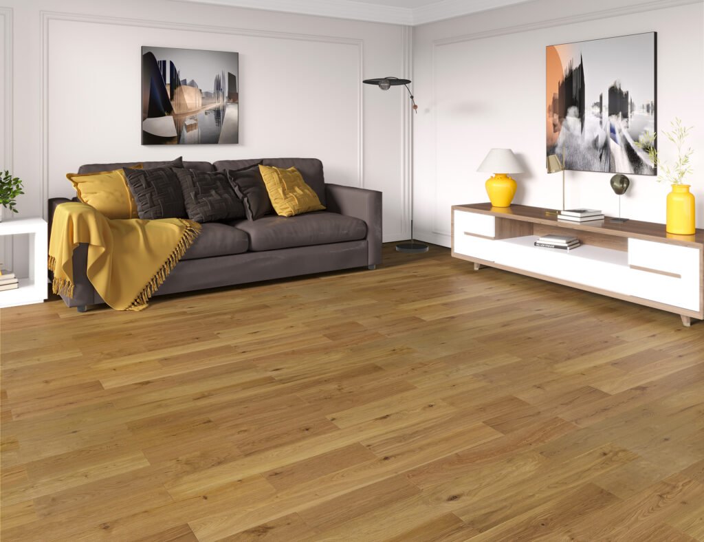Finefloor’s engineered oak flooring comes with a durable UV-cured topcoat that resists everyday wear from pets. However:
